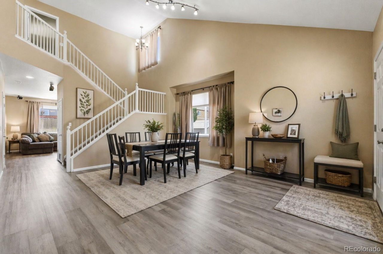 Welcome home to this beautifully updated and meticulously maintained 4-bedroom, 3-bath residence offering over 3,200 total square feet of bright, open living space. From the moment you walk in, youll notice the soaring vaulted ceilings and natural light that create an airy, inviting feel throughout.The main level features lovely hard surface flooring throughout paired with fresh interior paint, giving the home a clean, modern look thats truly move-in ready. The open layout flows seamlessly between living, dining, and kitchen spaces, perfect for both everyday living and entertaining. The home is also wired for TVs and computer setups throughout, making it ideal for todays connected lifestyle.Upstairs, the spacious primary suite comfortably accommodates a king-sized bed and offers a private retreat with a luxurious 5-piece bath and an expansive walk-in closet.The unfinished basement is full of opportunity, already equipped with egress windows, rough-in plumbing, and a radon mitigation system, ready for you to customize into additional living space, a guest suite, or the ultimate entertainment area.Step outside and enjoy a backyard designed for relaxation and enjoyment. The covered deck provides the perfect shaded extension of the home, while the hot tub area creates a private space to unwind year-round.The oversized 3-car garage, with convenient exterior access to the backyard, offers plenty of room for vehicles, storage, or hobbies and a place to charge for a EV vehicle. Located in the desirable Stillwater community, this home is just minutes from schools, golf courses, scenic trails along the South Platte River, shopping and dining at Prairie Center, recreation at Adams County Regional Park, and outdoor adventures at Barr Lake State Park.This is the one that blends space, updates, and lifestyle, dont miss it.