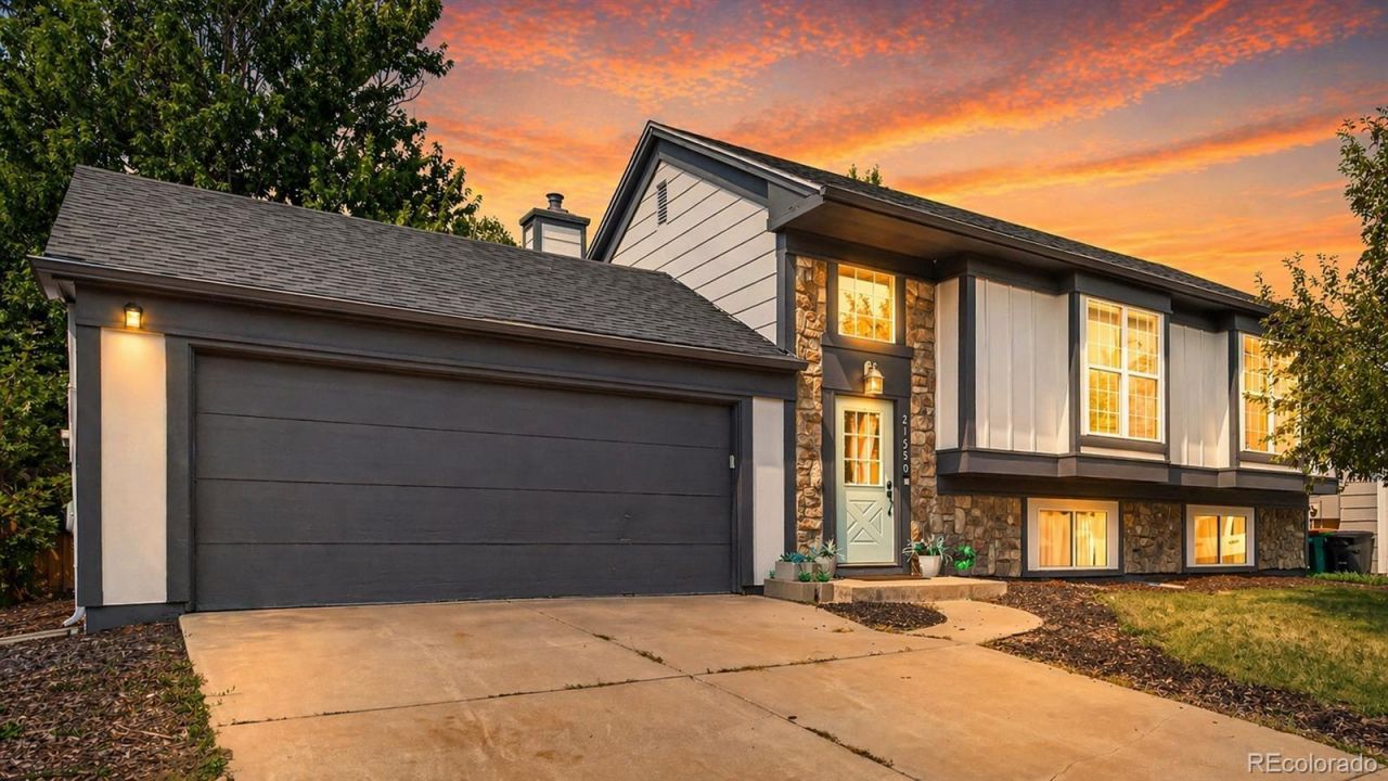 **VA Assumable Loan at 5.014%!**Welcome to 21550 E Alamo Place in Centennial, located in the desirable Parkborough neighborhood?an established community known for its welcoming atmosphere and access to highly rated schools in the Cherry Creek School District, including Canyon Creek Elementary, Thunder Ridge Middle, and Cherokee Trail High School.This bi-level home offers over 1,850 square feet of thoughtfully arranged living space with 4 bedrooms and 3 bathrooms. Vaulted ceilings and modern laminate flooring create an open feel, while granite countertops add a polished touch in the kitchen. The lower-level family room features a cozy fireplace, perfect for relaxing evenings. With two bedrooms on each level, the layout provides flexibility for guests, home offices, or multi-generational living.Outside, the fully fenced backyard offers a great space for entertaining or unwinding, with a deck ready for summer barbecues and plenty of room for outdoor activities, gardening, or simply enjoying Colorados sunshine.Conveniently located just minutes from Southlands Mall, youll have easy access to shopping, dining, and entertainment. Outdoor recreation is also close by with Saddle Rock Golf Club, Cherry Creek State Park, and nearby trails for biking and walking. Commuters will appreciate the quick access to E-470 for travel throughout the metro area.With **no HOA**, youll enjoy added flexibility and fewer restrictions?giving you the freedom to truly make this home your own.Come see everything 21550 E Alamo Place has to offer.